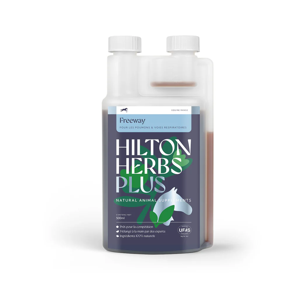 Freeway Plus van Hilton Herbs is ontwikkeld voor sportpaarden om gezonde, efficiënte luchtwegen en ademhalingsfunctie te ondersteunen. Het helpt het hele jaar door de weerstand tegen irriterende stoffen en infecties op te bouwen en is vooral gunstig voor dieren die in de winter beperkt buiten mogen, wanneer sporen en stof een groter probleem kunnen vormen.