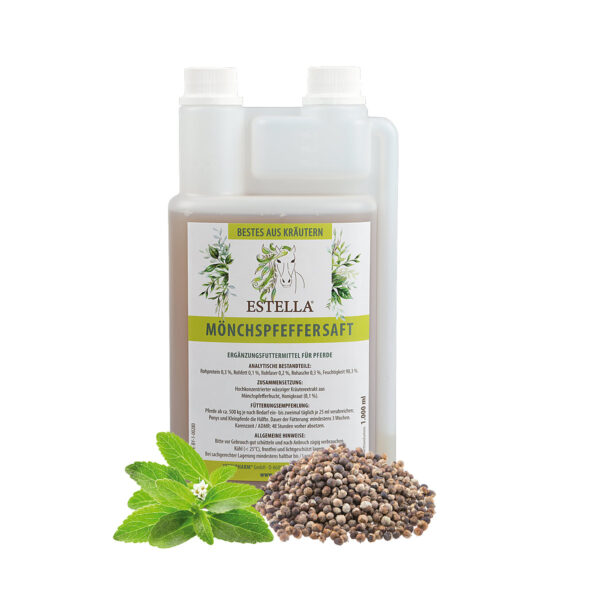 Estella monnikspepersap van Vetripharm is een waterig kruidenextract met een hoge concentratie monnikspeper en honingkruid. De natuurlijke ingrediënten van monnikspeper worden traditioneel gebruikt om hormonale schommelingen te behandelen. Het sap biedt nutritionele ondersteuning voor de hormonale stofwisseling van je paard.
