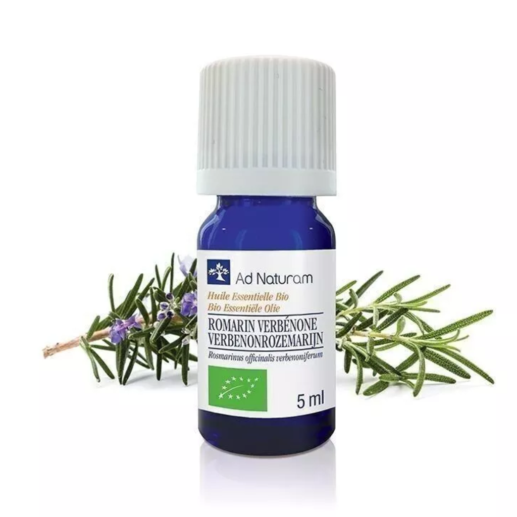 Rozemarijn verbenon (essence) van Ad Naturam is een etherische olie in een flesje van 5 ml. Men wint het uit de bladeren van de rozemarijnplant (Verbenone) in Zuid-Afrika. De geur is fris, kruidig en licht citroenachtig.